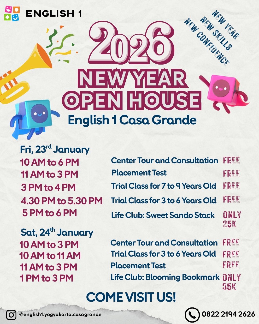 Join us at English 1 Casa Grande – New Year Open House 🏫✨